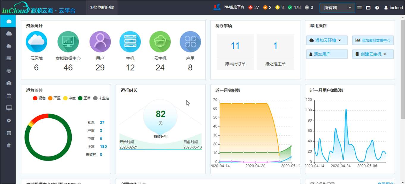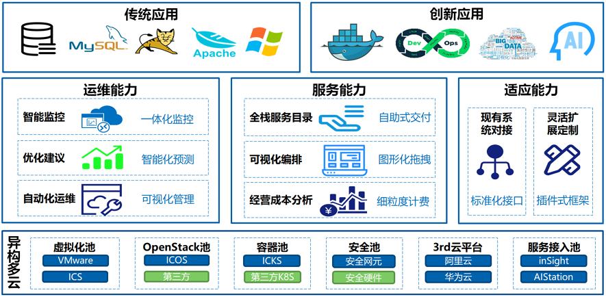 云管理平台InCloud Manager是云数据中心管理平台,面向私有云和混合云市场,提供开放、安全的企业级云数据中心运维管理能力。提供自底向上的全栈资源池管理和服务门户,满足企业级客户对多云、异构、服务目录、运维运营等需求,打造云、数、智一体化的云管理平台解决方案。帮助企业加速云的应用,实现业务的动态变更,资源的智能管理和服务的自动化交付。